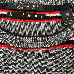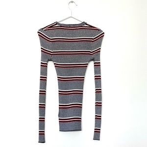 Knitted long sleeve top. Care tag is illegible. Fabric is stretchy. I am normally a size Small but this fits me fine. In great condition.