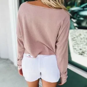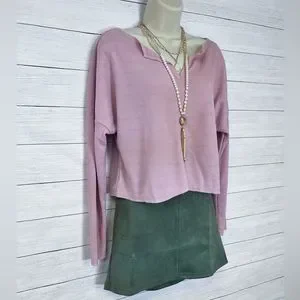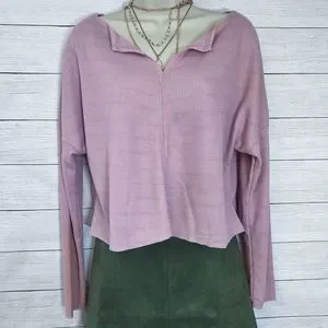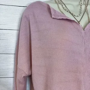 Boutique Brand Notch Collar Waffle Knit Lightweight Crop Top in Dusty Pink 💗