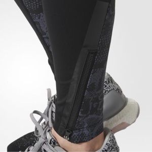 Adidas by Stella McCartney size XS Run Leo Tight, elasticized waist, internal waist pocket, contrast patterned lower leg panels with zippered leg openings, moisture wicking Climacool technology helps keep skin dry, NWOT