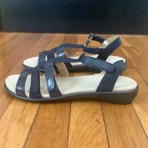 NIB Hotter navy leather gladiator sandals in style Sol. Women’s size 10. Velcro closure. Never worn and in perfect, new condition. Super light weight and comfortable.