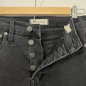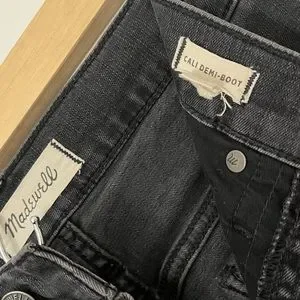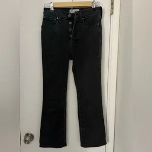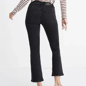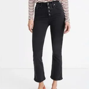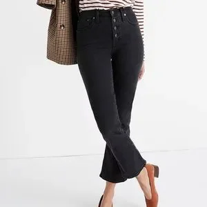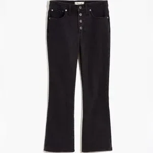 Lean and modern, these button-front jeans kick out into a cropped mini-flare that works with flats and heels alike.