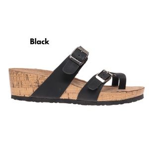 Faux cork midsole with a soft, molded footbed to comfortably cradle your foot
