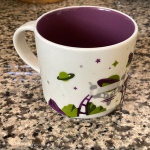 14 ounce mug features Tomorrowland attractions including Space Mountain