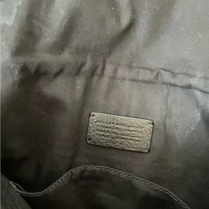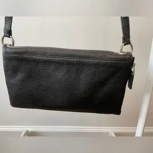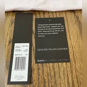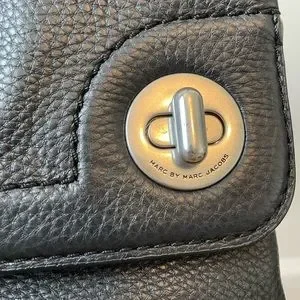 Marc Jacobs black with silver hardware, leather convertible bag. The strap is adjustable and approximately 24 to 26 inches. You can remove the strap then the leather bag becomes a clutch. It can be used day or night. The purchase comes with the original retail tags as well as the dust bag, there is no damage or scuff marks on the leather, the only wear and tear is on the silver hardware and the inside of the bag.