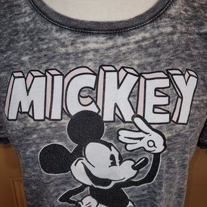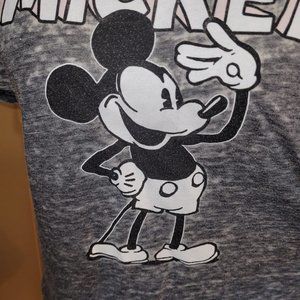 DIsney Women's Size Medium Distressed Mickey Mouse Graphic Print T-Shirt Grey