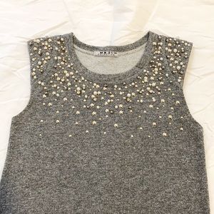 MB 21 Collection dress, short, grey, with peals, Perfect for date and party