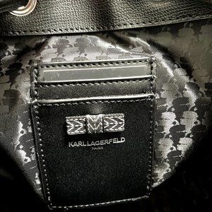 Karl Lagerfeld Paris Adele Logo Monogram Bucket Bag Black Gray Crossbody NWT