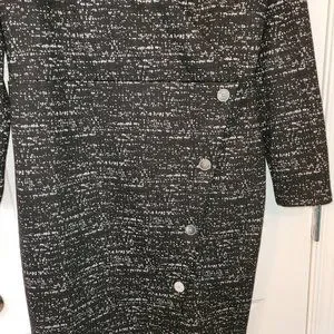 This is such a cool dress. It's a very thick winter-weight knit material with surplice bodice and asymmetrical buttons from the waist down. It's very flattering.