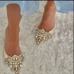 These gorgeous kitten heel pearl shoes / slides are the most beautiful and comfortable shoes. π