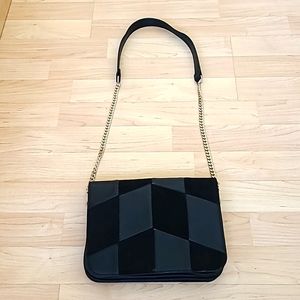 Zara Black Leather Crossbody Bag With Chain 9"×7"