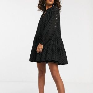 ASOS DESIGN Tall tiered trapeze mini dress in broderie in black