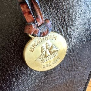 Vintage Brahmin smooth leather sachel handbag trimmed in pecan brown