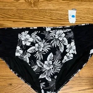 New With Tags Women's Time And Tru Hawaiian Flora Print High Waist Stretch Bikini Bottoms Plus Size 3X 24W-26W. Has no stains, holes, or rips.
