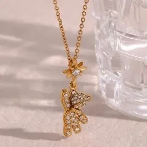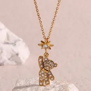 NEW TEDDY BEAR 18K GOLD DIAMOND PENDANT NECKLACE, NICE NECKLACE, CUTE NECKLACE