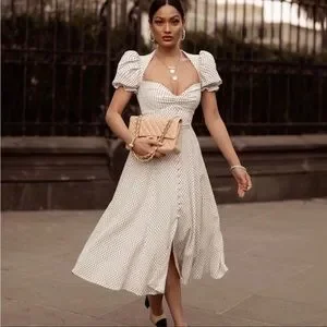 RARE HOUSE OF CB 'Ellery' Polka Dot Puff Sleeve Midi Sundress NWOT