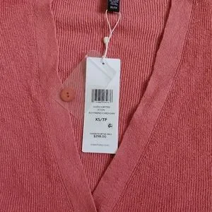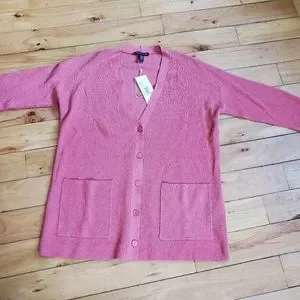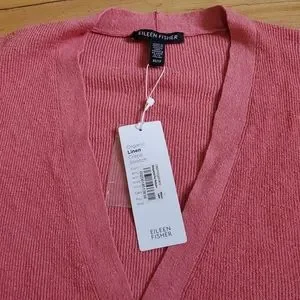 Eileen Fisher Organic Linen Crepe Stretch Boyfriend Cardigan "Coral"