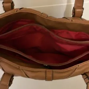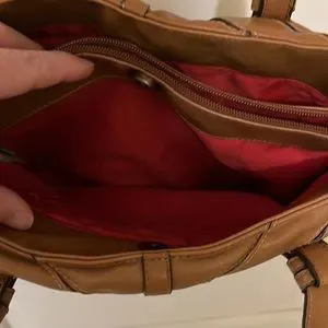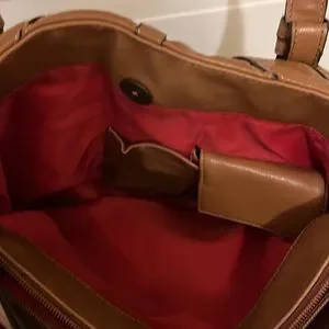 This purse is in great shape! Just a little fraying on strap and some marks on shell. See pics. Inner zipper pouch is great for security.