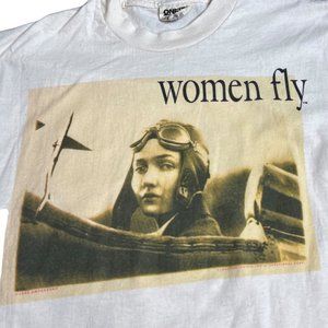 VINTAGE 90s Amelia Earhart Women Fly T-Shirt 1992 Single Stitch Size Medium