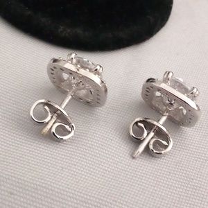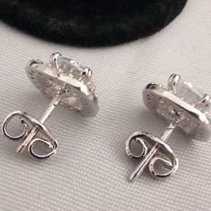 These are really pretty and look like diamonds instead of sapphires. There is a 1ct sapphire in each one surrounded by sapphire accents. The setting is fine silver 👄 they are stamped