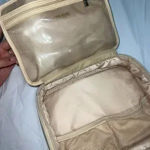 Well loved as pictures show. Zipper works fine. Mainly cosmetic stains on the inside but outside material is fine. Handle on the outside has some wear as pictured. Can ship out asap.
