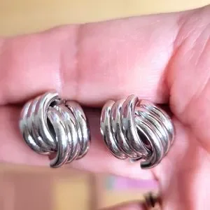 Knot Design Stud Earrings Silvertone For Pierced Ears NEW