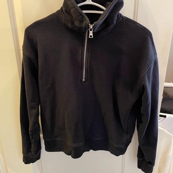 The Group by Babaton sweater in black, size M. Comfortable quarter-zip pullover sweatshirt, slightly cropped. Excellent pre-loved condition.