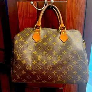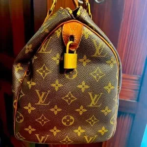 Louis Vuitton Speedy 30. Authentic, good shape canvas in excellent condition, some small cracking on vachetta. Very nice iconic purse. No key for lock.