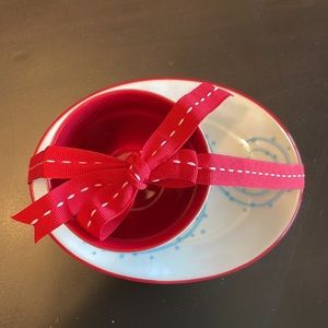 Starbucks Holiday 2007 Coffee Cup & Saucer Set Penguin Snowman Red White Blue