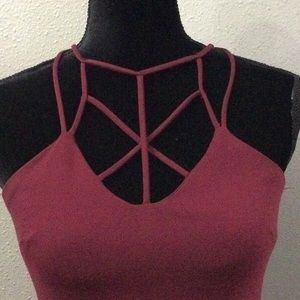 Haute Monde dark purple body con dress with a side bottom slip and strap detailing in the front size S. Only been worn once it’s in excellent condition with no stains or marks and has a fully functional zipper and adjustable straps. (2)