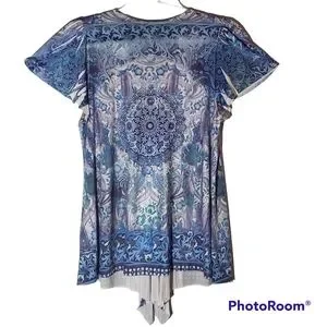 Simply Emma plus size 2X geometric print short sleeves gathered front top. 618