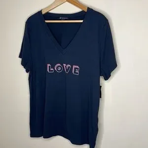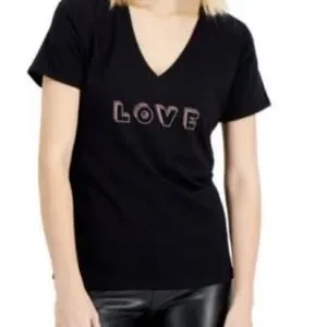 INC International Concepts Black Cotton Love Graphic-Print T-Shirt Size Large