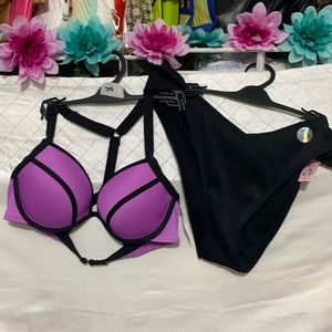 Purple/black swim suit.. TOP: IS LARGE CAN BE ADJUSTED ON BACK AND SHOULDER