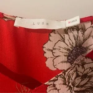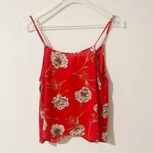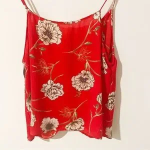 Lush Red Floral Crop Top With Spaghetti Straps With Knot Accent Size Medium