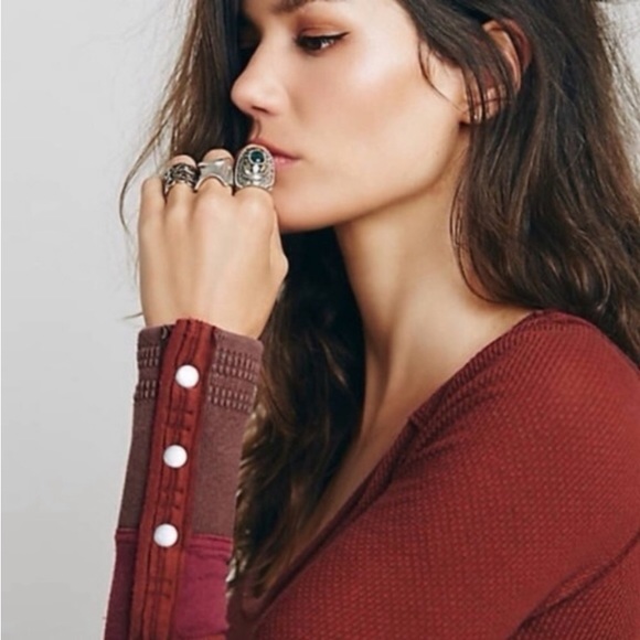 Free People Long Sleeve Sunnie Valley Cuff Thermal Maroon Size S