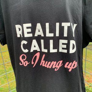Front of shirt says: REALITY CALLED So I Hung Up.