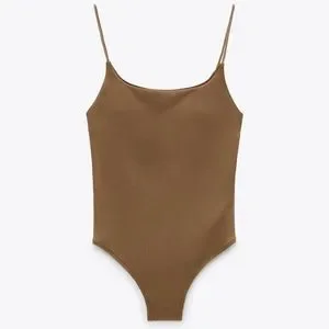 {Zara} Brand New Brown Ribbed One Piece.