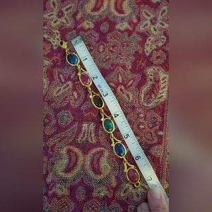 This is a marked LCi gold tone bracelet. The "stones" are glass material. Well made costume piece. Length, with clasp, is approximately 7".