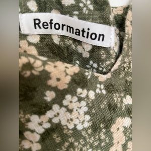 Green Reformation Martin Linen Dress in sold out Linseed pattern. Size 4, fits TTS. Like new condition. Smoke-free home.
