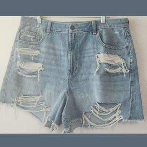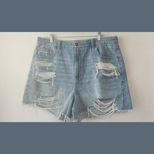 American Eagle Distressed Curvy Mom Denim Shorts Sz 18