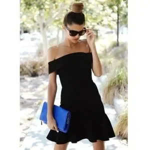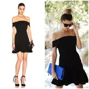 N/Nicholas Off Shoulder Ponte Mini Black Dress 2