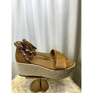 Marc Fisher Jazlyn Studded Ankle Leather Strap Espadrille Wedge Sandal with Brown/Silver Accents