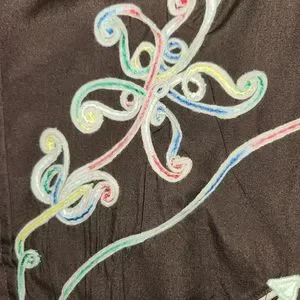 Gorgeous vintage brown Kennington Rocking K Ranchwear western cowboy shirt. Nice chocolate brown, darker than first photo. Multicolored floral embroidery. Pearl snaps. Women's size Medium, Men's neck size 15. Fits like a men's small. EUC. Vintage means it may have a minor flaw here and there. This is a gem. Once again, I'm only selling these embroidered westerns because I outgrew them.