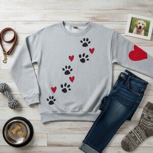 Paw Print Heart Elbow Patch Sweatshirt - Oversized Small