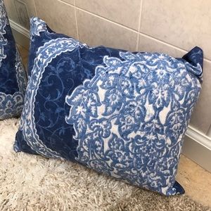 Decorative accent pillows set of 2 blue and white