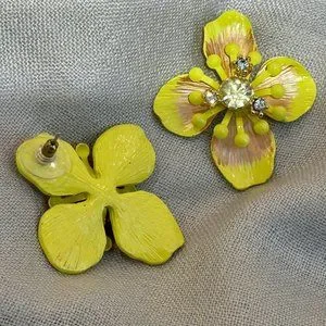 Vintage yellow enamel and crystal statement earrings with stud backing. Earrings are 1 3/4" length in great condition.