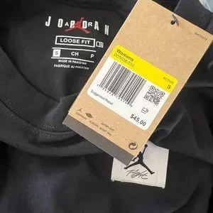 This NWT Nike Jordan Essentials Boxy tee in black is 100% cotton and features a cropped boxy shape for a light, easy-going fit.