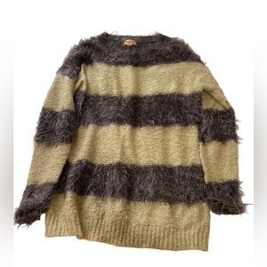 Beulah Fuzzy Striped Purple and Tan Textured Sweater- FANTASTIC! Size S/M