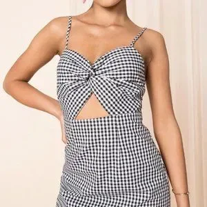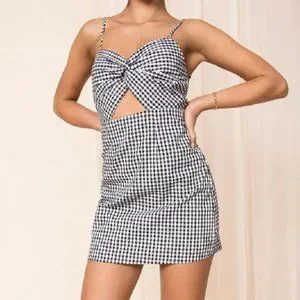 superdown Belle Knot Mini Dress Gingham Black White Check Cutout Size Small