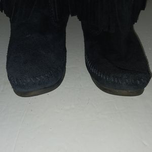 Minnetonka black suede fringe Moccasin Boots - US 8 - 12" tall