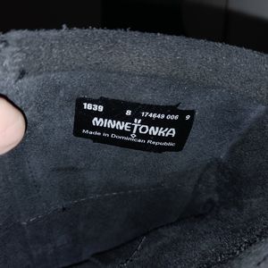 Minnetonka Black Suede Fringe Moccasin Pull-On Boots - US 8 - EUC